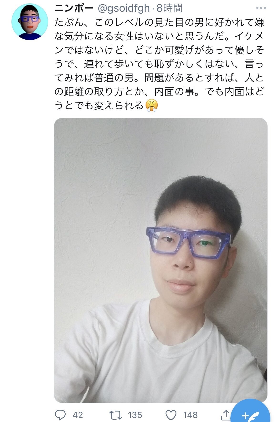 【画像】男性「このレベルの顔の男に好かれて嫌な気持ちになる女性はいないと思う。」 2021年07月28日 カテゴリ:雑談・面白ネタ・VIP・なんj 【オススメ記事】1: 名無しの太郎 2021/07/24(土) 10:55:28.97 ID:hJGrHJGH0 【【画像】男性「このレベルの顔の男に好かれて嫌な気持ちになる女性はいないと思う。」】の続きを読む