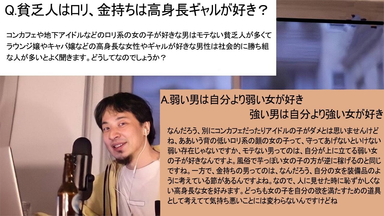 【悲報】ひろゆき「少女好きな人、全員馬鹿です。賢い人は高身長の女性を好みます」 2021年12月21日 カテゴリ:動画サイト・配信者・ニコニコ・youtube 【オススメ記事】1: 名無しの太郎 2021/12/17(金) 10:56:42.08 ID:sEoTWroS0 【【悲報】ひろゆき「少女好きな人、全員馬鹿です。賢い人は高身長の女性を好みます」】の続きを読む
