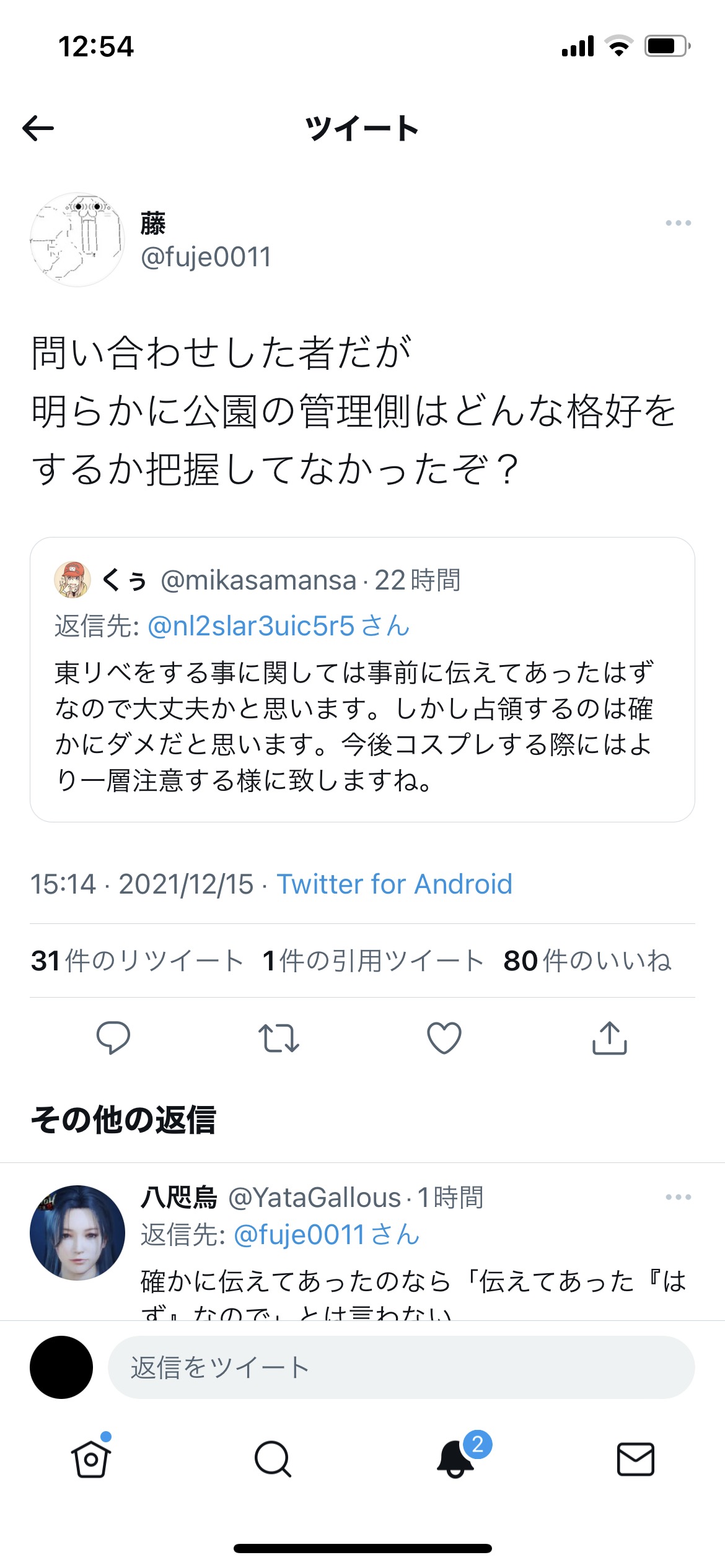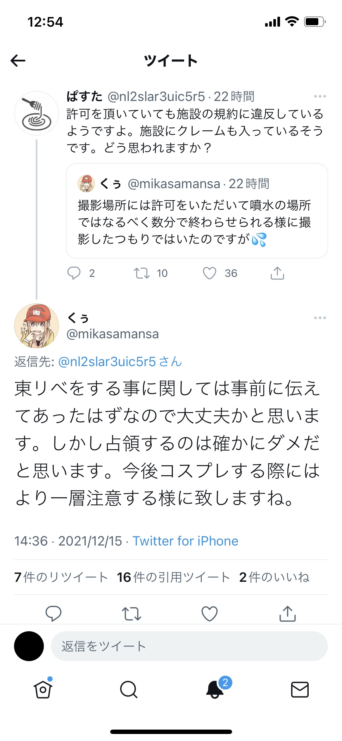 【悲報】東リベの集団コスで公園を恐怖に陥れた人たちが炎上 2021年12月20日 カテゴリ:アニメ・漫画・声優 【オススメ記事】1: 名無しの太郎 2021/12/16(木) 16:30:50.42 ID:gPZlyrSgr 公園でコスプレヤンキー軍団の撮影云が行われる ↓ 市民が地域管理に通報 ↓ 首謀者「地域管理に許可は取ってる」 ↓ 地域管理「許可はしたがヤンキーが集まるとは聞いてない」 【【悲報】東リベの集団コスで公園を恐怖に陥れた人たちが炎上】の続きを読む
