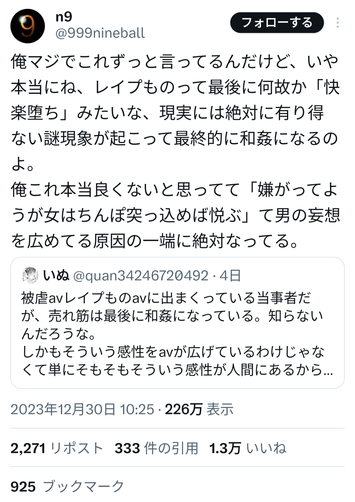 識者「レプもので女性が“快楽堕ち”するのは良くない。男の妄想を広める原因になってる」 2023年12月31日 【オススメ記事ピックアップ!】・有名モデル「野球って勝手にルール作って、勝手にやって、勝手に盛り上がってすごいねって」・【画像】けん玉日本一になった女子中学生・【悲報】恋愛もう上位10%の男しか出来なくなる・【悲報】中国父さん、「ドラゴンボール」の起源を主張してしまうwwwwwwwwwwwww・テレビ局「Z世代どうしてテレビ見ないの?」Z世代「だってテレビ持ってないし」・【画像】 僕やばの姉、かわいすぎるwwwwwwwwwwwwwwwwwwwwwwww ・ 【画像】 米軍「おい自衛隊、演習で我々が守ってる街を奪還してみろ」ジャップ自衛隊「おかのした」・【悲報】 木村沙織の(夫の接客態度が最悪すぎて口コミ評価がひどすぎる)カフェ、閉店・【悲報】 学校のリーダーズとかいうアイドルwwwwwwwwww・ 【速報】 中将ガープさん、黒ひげ海賊団にリンチされて死亡・ 【超絶速報】 岸田「奨学金に課税するぞ~」 ・ 【朗報】 ルフィ、黄猿を捕獲するwwww1: 名無しの太郎 2023/12/31(日) 00:53:51.31 ID:pAQfdWd40 一理ある 【識者「レプもので女性が“快楽堕ち”するのは良くない。男の妄想を広める原因になってる」】の続きを読む