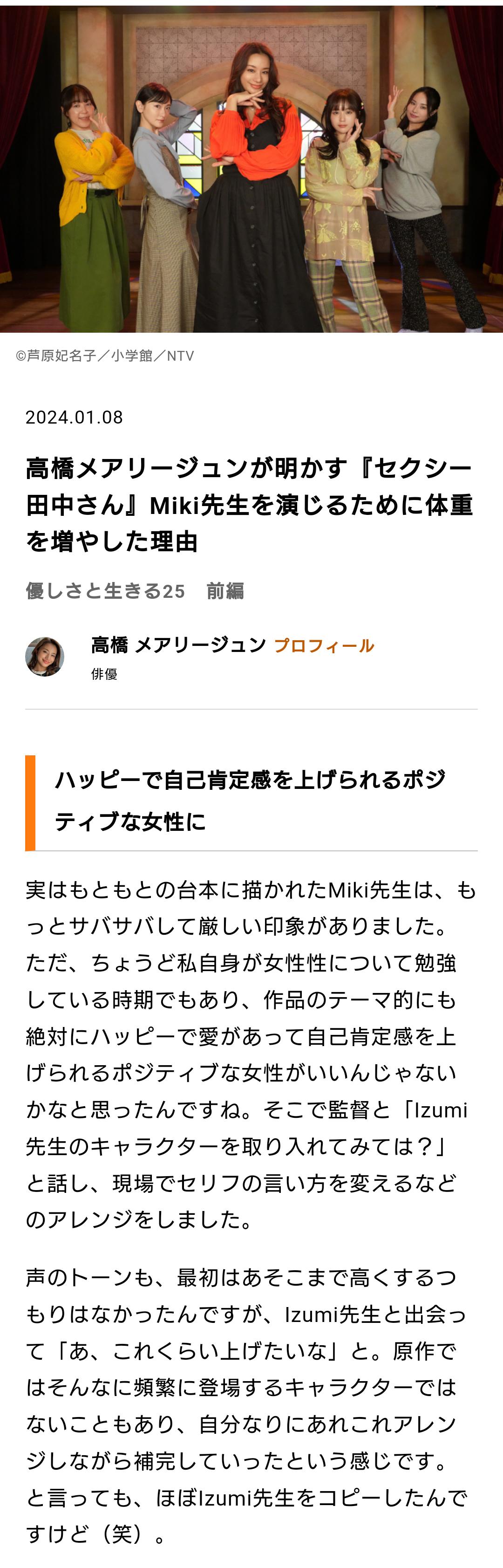 ドラマ「セクシー田中さん」の俳優、現場のノリでキャラクターをアレンジしていた 2024年01月31日 1: 名無しの太郎 2024/01/31(水) 02:05:34.40 ID:DJEhHFU1M 高橋メアリージュンが明かす『セクシー田中さん』Miki先生を演じるために体重を増やした理由 https://gendai.media/articles/-/122462?page=3 【オススメ記事ピックアップ!】・有名モデル「野球って勝手にルール作って、勝手にやって、勝手に盛り上がってすごいねって」・【画像】けん玉日本一になった女子中学生・【悲報】恋愛もう上位10%の男しか出来なくなる・【悲報】中国父さん、「ドラゴンボール」の起源を主張してしまうwwwwwwwwwwwww・テレビ局「Z世代どうしてテレビ見ないの?」Z世代「だってテレビ持ってないし」・【画像】 僕やばの姉、かわいすぎるwwwwwwwwwwwwwwwwwwwwwwww ・ 【画像】 米軍「おい自衛隊、演習で我々が守ってる街を奪還してみろ」ジャップ自衛隊「おかのした」・【悲報】 木村沙織の(夫の接客態度が最悪すぎて口コミ評価がひどすぎる)カフェ、閉店・【悲報】 学校のリーダーズとかいうアイドルwwwwwwwwww・ 【速報】 中将ガープさん、黒ひげ海賊団にリンチされて死亡・ 【超絶速報】 岸田「奨学金に課税するぞ~」 ・ 【朗報】 ルフィ、黄猿を捕獲するwwww 【ドラマ「セクシー田中さん」の俳優、現場のノリでキャラクターをアレンジしていた】の続きを読む