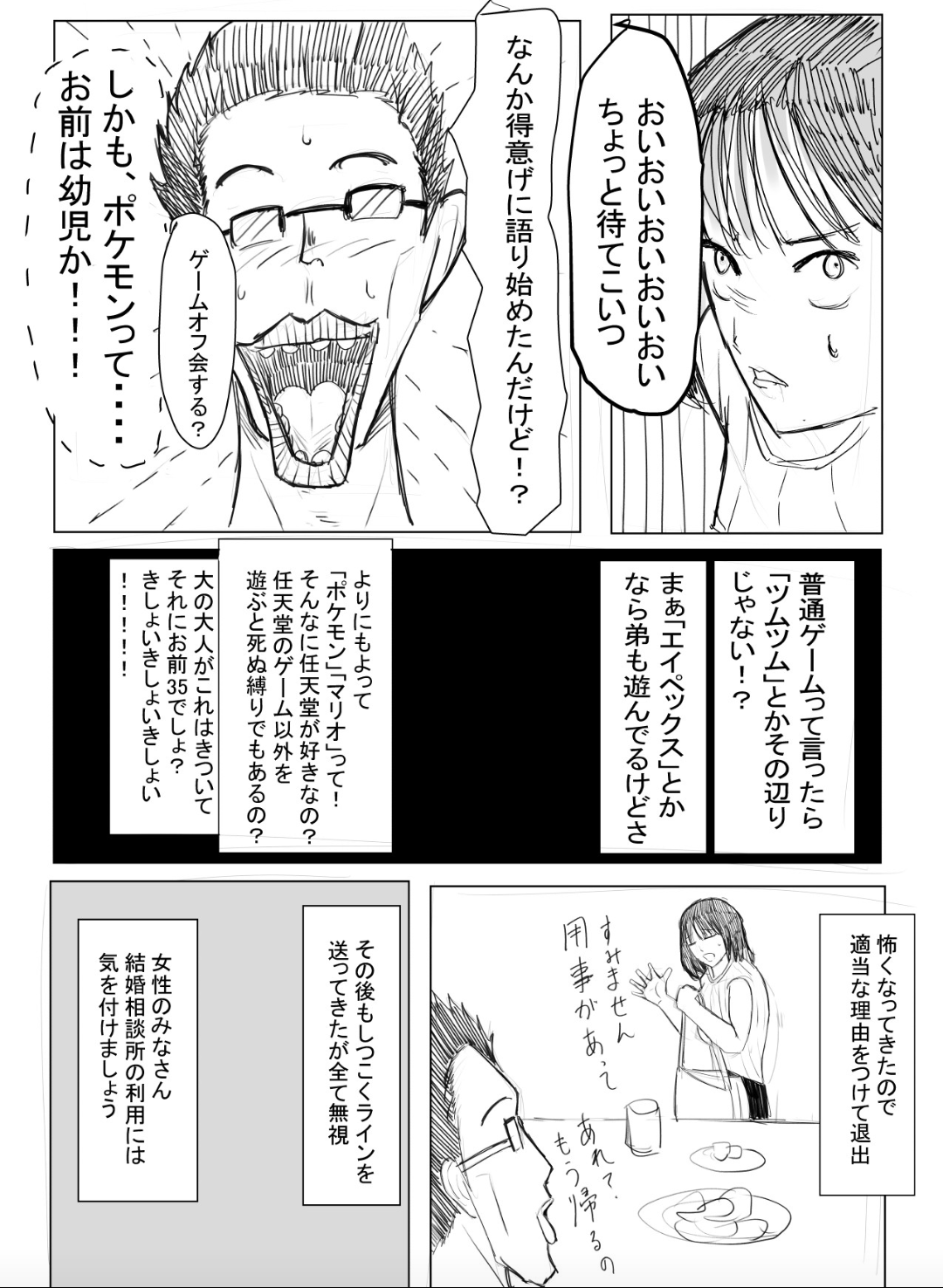 【画像】女子「趣味が""ゲーム""の男がいた、キモすぎるから漫画にした」 2024年05月31日 1: 名無しの太郎 2024/05/30(木) 22:58:37.04 ID:y5uF/rd10 【オススメ記事ピックアップ!】・有名モデル「野球って勝手にルール作って、勝手にやって、勝手に盛り上がってすごいねって」・【画像】けん玉日本一になった女子中学生・【悲報】恋愛もう上位10%の男しか出来なくなる・【悲報】中国父さん、「ドラゴンボール」の起源を主張してしまうwwwwwwwwwwwww・テレビ局「Z世代どうしてテレビ見ないの?」Z世代「だってテレビ持ってないし」・【画像】 僕やばの姉、かわいすぎるwwwwwwwwwwwwwwwwwwwwwwww ・ 【画像】 米軍「おい自衛隊、演習で我々が守ってる街を奪還してみろ」ジャップ自衛隊「おかのした」・【悲報】 木村沙織の(夫の接客態度が最悪すぎて口コミ評価がひどすぎる)カフェ、閉店・【悲報】 学校のリーダーズとかいうアイドルwwwwwwwwww・ 【速報】 中将ガープさん、黒ひげ海賊団にリンチされて死亡・ 【超絶速報】 岸田「奨学金に課税するぞ~」 ・ 【朗報】 ルフィ、黄猿を捕獲するwwww 【【画像】女子「趣味が""ゲーム""の男がいた、キモすぎるから漫画にした」】の続きを読む