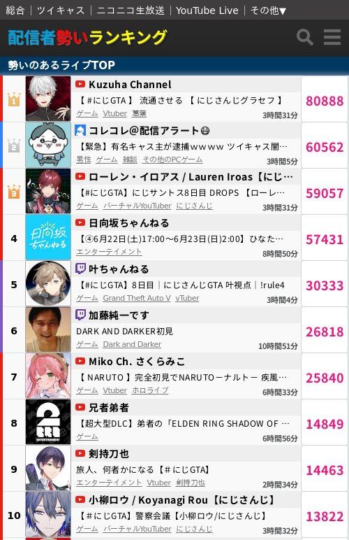【悲報】オタク男子さん、Vtuberのジャンルまで女性に奪われてしまう 2024年06月23日 1: 名無しの太郎 2024/06/23(日) 02:26:56.12 ID:EdQfaxpJ0 1位男性V 3位男性V 5位男性V 9位男性V 10位男性V 女子に人気のVに支配された模様 【オススメ記事ピックアップ!】・有名モデル「野球って勝手にルール作って、勝手にやって、勝手に盛り上がってすごいねって」・【画像】けん玉日本一になった女子中学生・【悲報】恋愛もう上位10%の男しか出来なくなる・【悲報】中国父さん、「ドラゴンボール」の起源を主張してしまうwwwwwwwwwwwww・テレビ局「Z世代どうしてテレビ見ないの?」Z世代「だってテレビ持ってないし」・【画像】 僕やばの姉、かわいすぎるwwwwwwwwwwwwwwwwwwwwwwww ・ 【画像】 米軍「おい自衛隊、演習で我々が守ってる街を奪還してみろ」ジャップ自衛隊「おかのした」・【悲報】 木村沙織の(夫の接客態度が最悪すぎて口コミ評価がひどすぎる)カフェ、閉店・【悲報】 学校のリーダーズとかいうアイドルwwwwwwwwww・ 【速報】 中将ガープさん、黒ひげ海賊団にリンチされて死亡・ 【超絶速報】 岸田「奨学金に課税するぞ~」 ・ 【朗報】 ルフィ、黄猿を捕獲するwwww 【【悲報】オタク男子さん、Vtuberのジャンルまで女性に奪われてしまう】の続きを読む