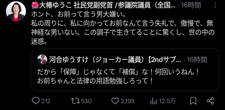 女さん「お前って言う男大嫌い。世の中の迷惑。」←2000いいね 2025年04月26日 【オススメ記事ピックアップ!】・有名モデル「野球って勝手にルール作って、勝手にやって、勝手に盛り上がってすごいねって」・【画像】けん玉日本一になった女子中学生・【悲報】恋愛もう上位10%の男しか出来なくなる・【悲報】中国父さん、「ドラゴンボール」の起源を主張してしまうwwwwwwwwwwwww・テレビ局「Z世代どうしてテレビ見ないの?」Z世代「だってテレビ持ってないし」・【画像】 僕やばの姉、かわいすぎるwwwwwwwwwwwwwwwwwwwwwwww ・ 【画像】 米軍「おい自衛隊、演習で我々が守ってる街を奪還してみろ」ジャップ自衛隊「おかのした」・【悲報】 木村沙織の(夫の接客態度が最悪すぎて口コミ評価がひどすぎる)カフェ、閉店・【悲報】 学校のリーダーズとかいうアイドルwwwwwwwwww・ 【速報】 中将ガープさん、黒ひげ海賊団にリンチされて死亡・ 【超絶速報】 岸田「奨学金に課税するぞ~」 ・ 【朗報】 ルフィ、黄猿を捕獲するwwww1: 名無しの太郎 2025/04/26(土) 13:33:13.29 ID:0+jrPZ2O0 【女さん「お前って言う男大嫌い。世の中の迷惑。」←2000いいね】の続きを読む