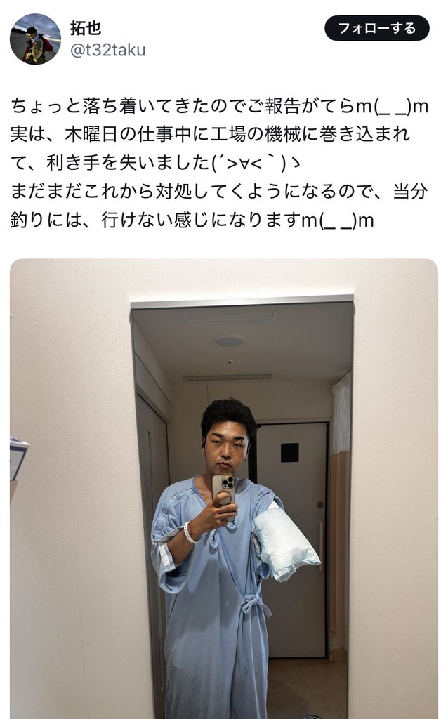 【画像】工場勤務X民、腕が潰されてシャンクスになってしまう 2025年04月21日 【オススメ記事ピックアップ!】・有名モデル「野球って勝手にルール作って、勝手にやって、勝手に盛り上がってすごいねって」・【画像】けん玉日本一になった女子中学生・【悲報】恋愛もう上位10%の男しか出来なくなる・【悲報】中国父さん、「ドラゴンボール」の起源を主張してしまうwwwwwwwwwwwww・テレビ局「Z世代どうしてテレビ見ないの?」Z世代「だってテレビ持ってないし」・【画像】 僕やばの姉、かわいすぎるwwwwwwwwwwwwwwwwwwwwwwww ・ 【画像】 米軍「おい自衛隊、演習で我々が守ってる街を奪還してみろ」ジャップ自衛隊「おかのした」・【悲報】 木村沙織の(夫の接客態度が最悪すぎて口コミ評価がひどすぎる)カフェ、閉店・【悲報】 学校のリーダーズとかいうアイドルwwwwwwwwww・ 【速報】 中将ガープさん、黒ひげ海賊団にリンチされて死亡・ 【超絶速報】 岸田「奨学金に課税するぞ~」 ・ 【朗報】 ルフィ、黄猿を捕獲するwwww1: 名無しの太郎 2025/04/21(月) 12:59:21.642 ID:d8SQF59N0 腕あってウキウキだった頃 【【画像】工場勤務X民、腕が潰されてシャンクスになってしまう】の続きを読む