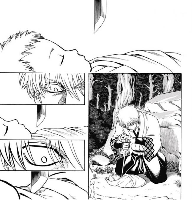 異常な成長を遂げて赤子となった肉塊を銀時が殺そうとするが情に負けて殺せず育てたら子供の松陽になる