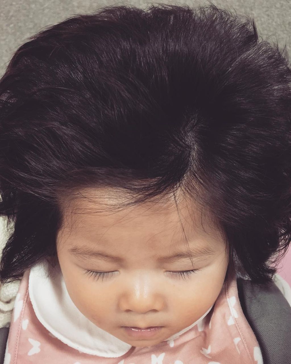 写真は髪の毛の多さと表情のかわいらしさで「爆毛」赤ちゃんとして世界中でまたたくまに評判となり、現在はインスタグラムのフォロワーが20万人を超えているということです。