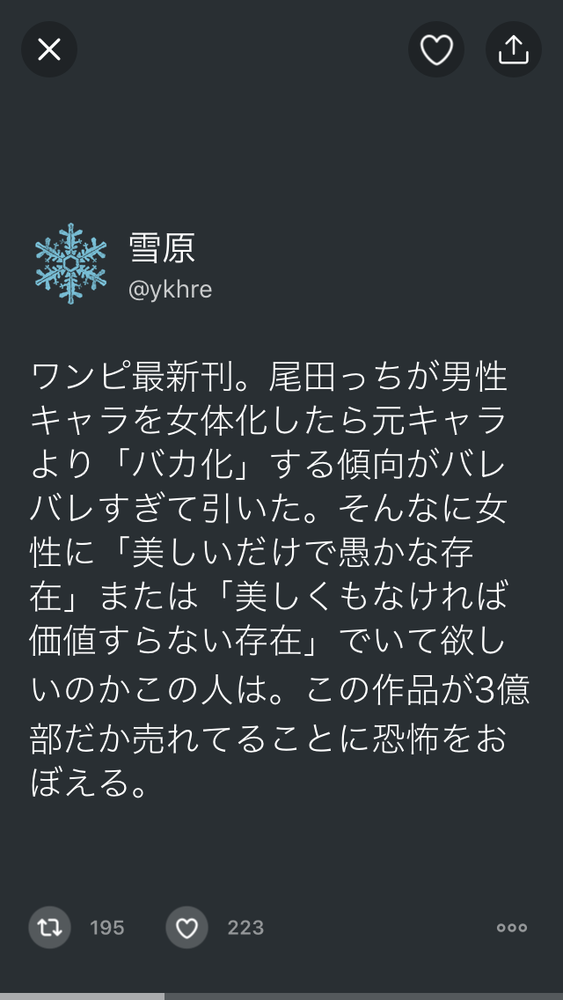 醜かろうがババアだろうがレディ扱いするサンジっていう良キャラがいるだけマシやろ