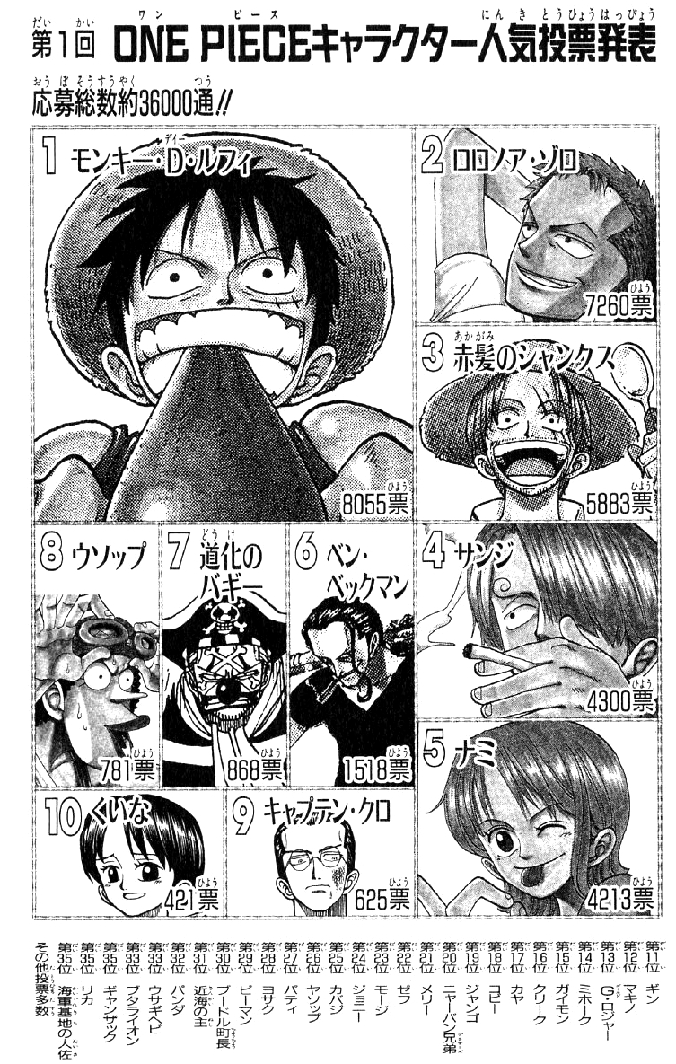 ちなみにこれビッグマムに追われてる辺りの時の人気投票やで
