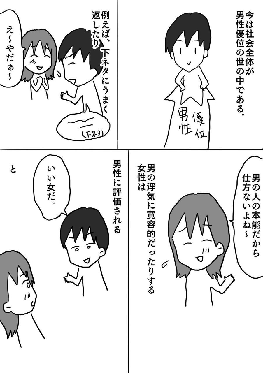 これ要するに男女関係なく自分と同じ価値観持ってない人間は異常!!全部男社会のせい‼︎︎って言いたいんだろ?