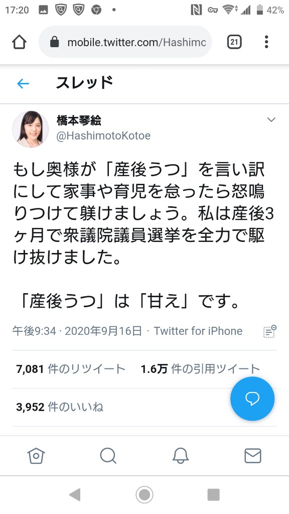 こいつ産後うつは甘えみたいなこと言うてたよな