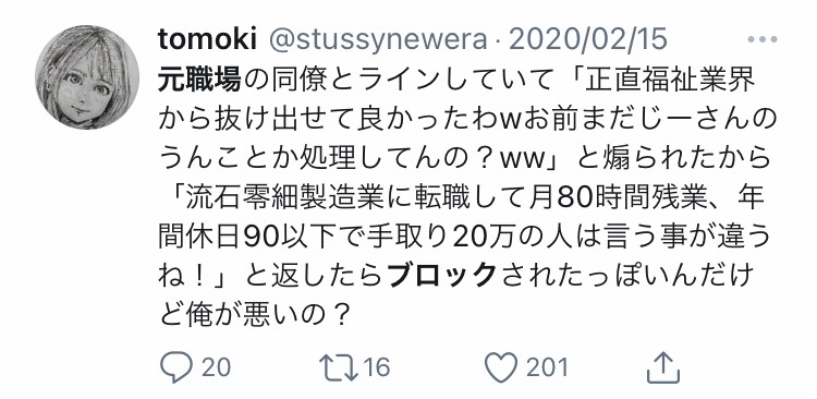 嘘松なのはおいといて、そんな環境の元同僚に馬鹿にされるってさらに酷いんやろな