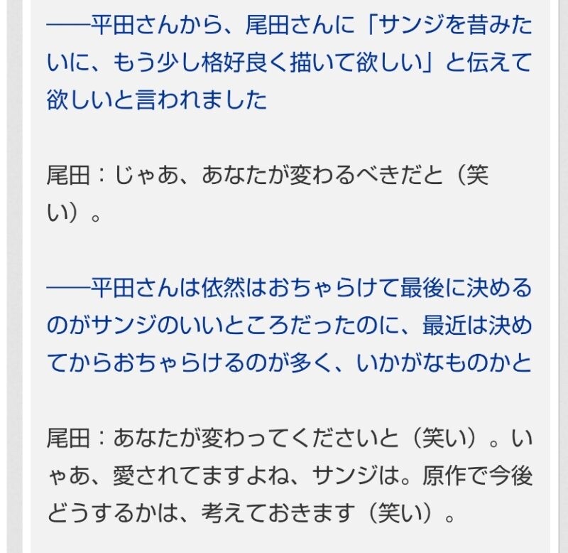 【ワンピース】サンジの声優「サンジ役の平田です」尾田先生「あぁ~、そっちになっちゃいましたか」