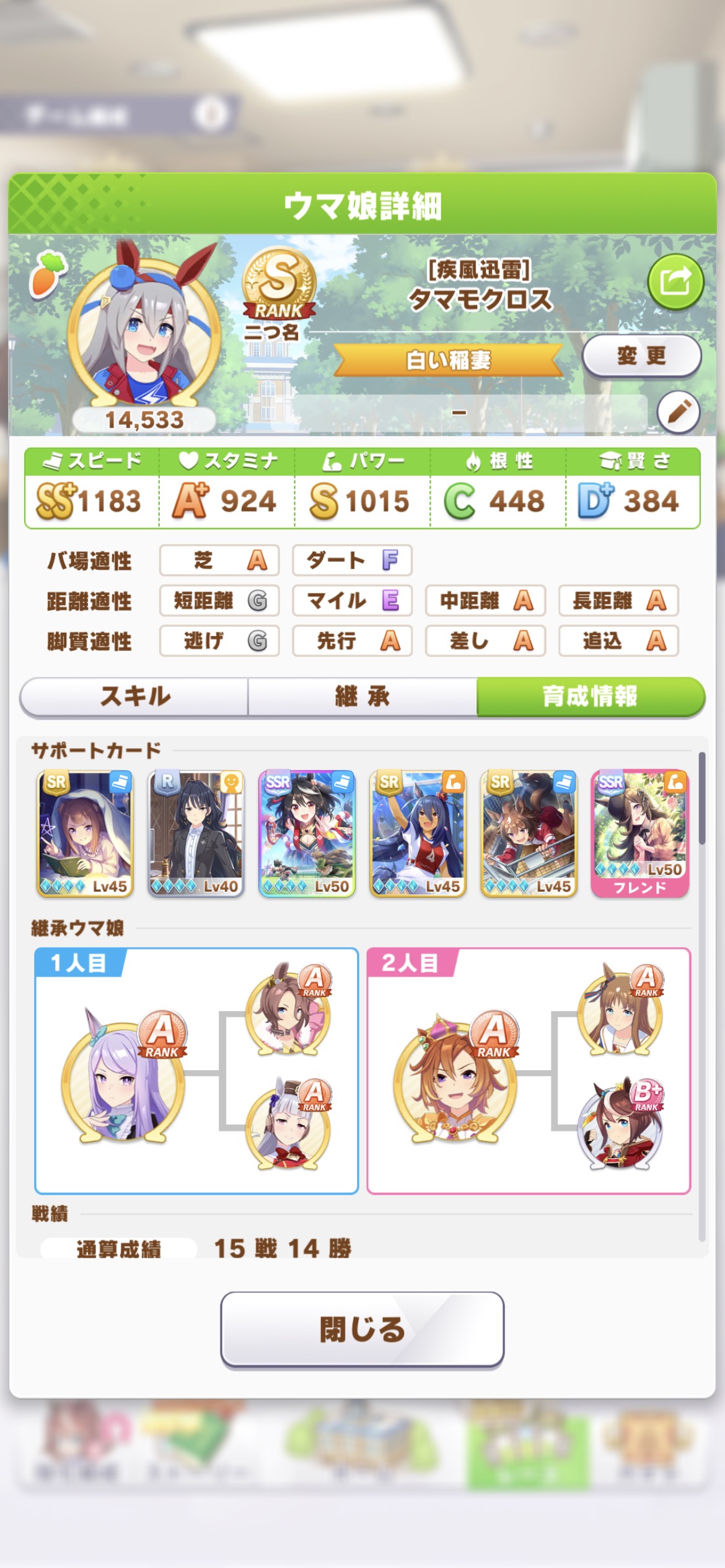 キタサン完凸、ホール完凸、ライス完凸を持ってないとスタートラインにすら立てないんだ