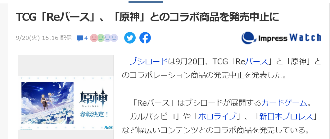 原神は予定してたTCGが発売中止になった
