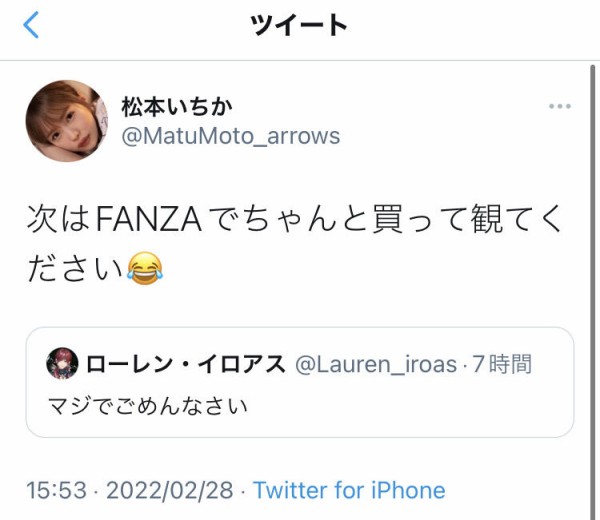 違法視聴しただけで松本いちかからリプもらえるとか最高すぎるだろ