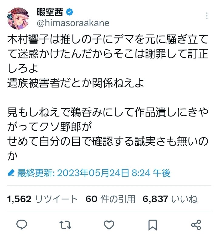 明確な侮辱を制作側がしたなら謝るのは当然やが木村母に謝るのは誹謗中傷しまくるガ×ジどもでしかないやろ