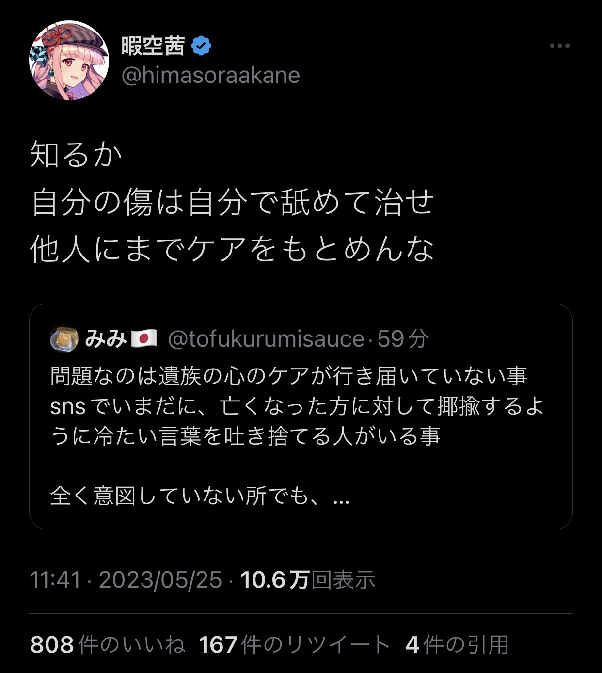 だがその創作のファンが遺族を攻撃するのは絶対に駄目だわ