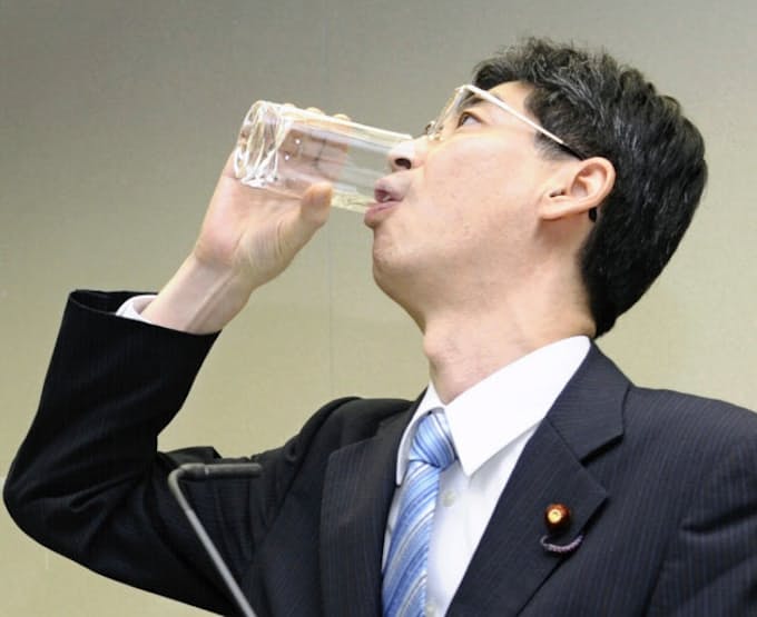 内閣府政務官、低濃度汚染水の浄化水ゴクリ