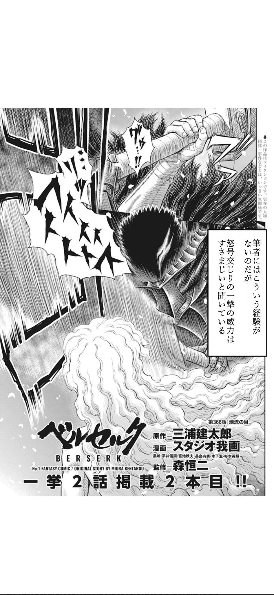 最新42巻は原作者である三浦建太郎氏が2021年に急逝し、作画・スタジオ我画、監修・森恒二氏の新体制になってから初の単行本となる。