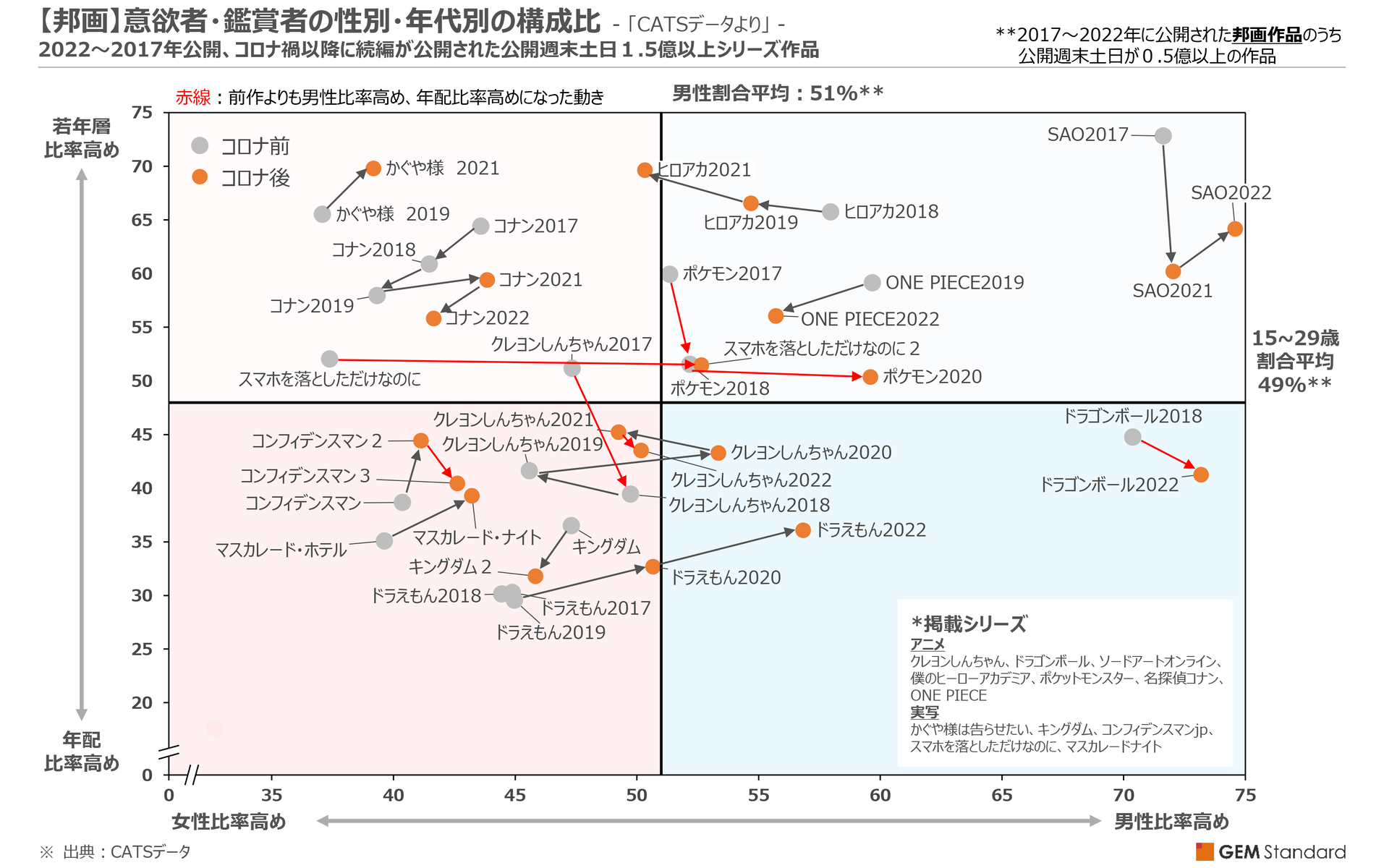普通のファミリー向けアニメは両親+子供で見に行くから必然的に若者率は下がる