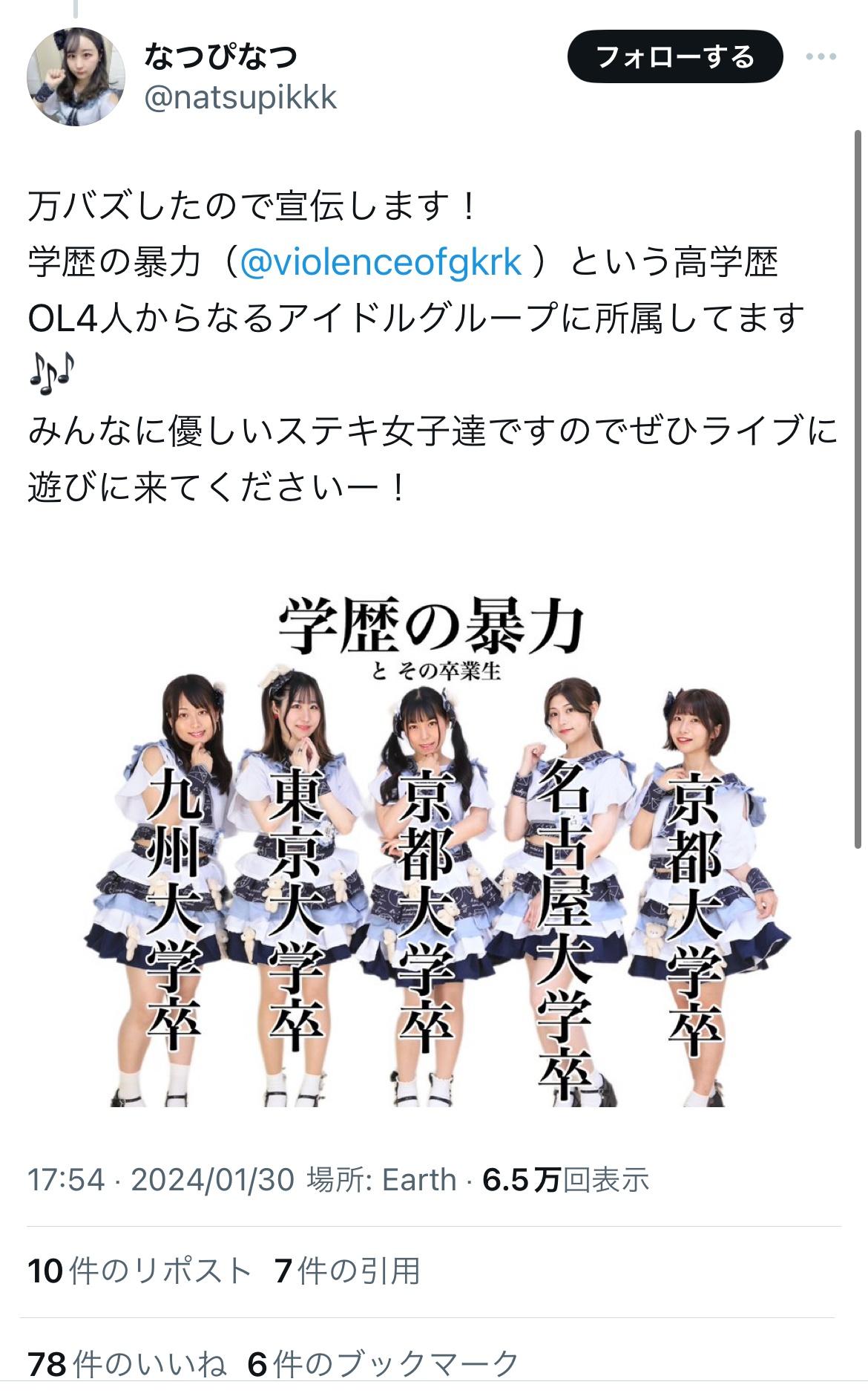 まぁアイドルやし学歴フィルターも緩いんやろな