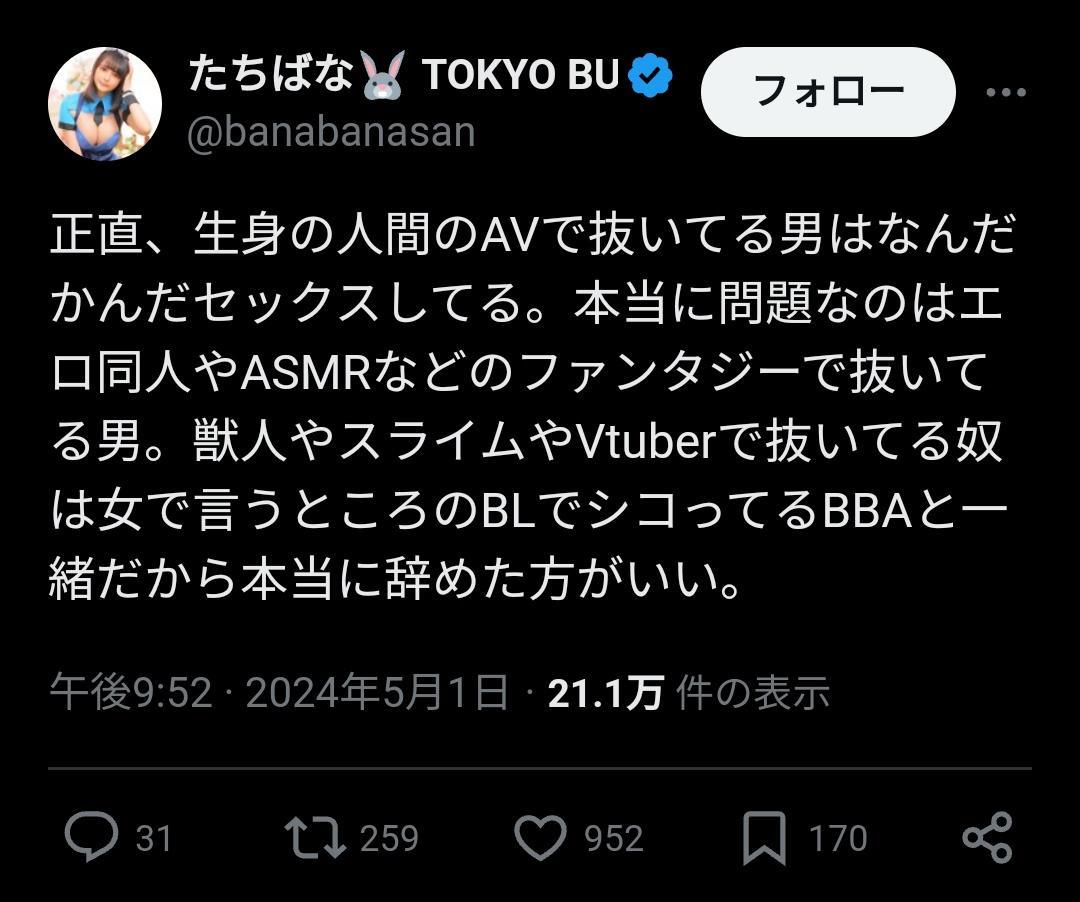 工口漫画はファンタジーってのはまだ分かるけど向こう側で生身の人間が演じてるという点でASMRはAVと一緒やろ