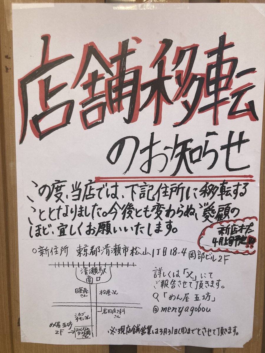 清瀬の辺鄙辺鄙なところでかなり行列を作ってた店なんだけど、駅前に移転。