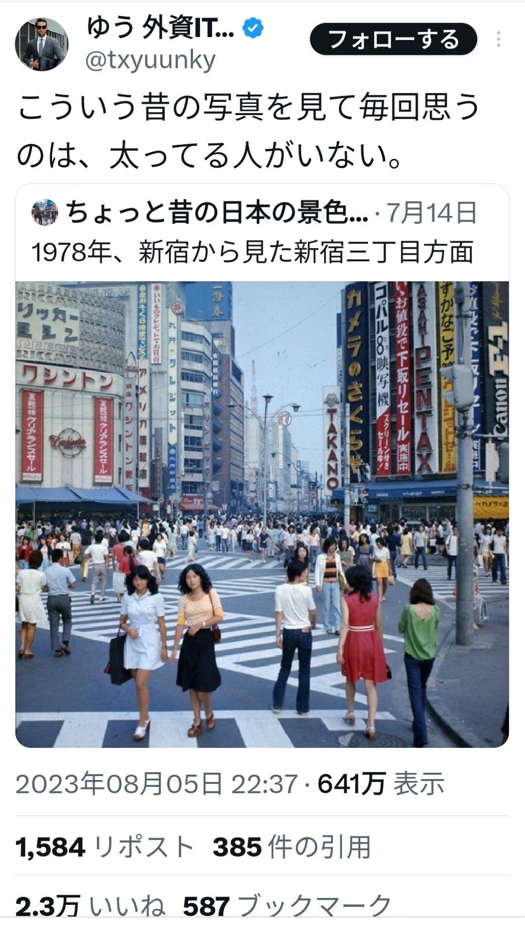 10月19日、X(旧ツイッター)に、あるサイトが、京都で行われた生活保護者ならびに支援者100人が行ったデモ内で、「たまには旅行に行きたいぞ」「たまにはオシャレもしたいぞ」などと訴えていたことを見出しにした記事を引用する形で《働いてる人でも 旅行できない人が多くいるので 絶対に無理です》と切り出したあおちゃんぺ。