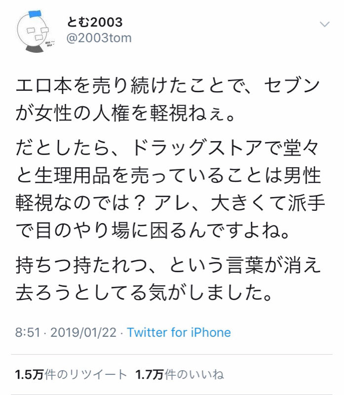 セブンイレブン、ローソン、ファミリーマートのコンビニ大手三社が、ついに成人向け雑誌の販売を取りやめると決定した。賛成派から「教育の為」「オリンピック前に当然の措置」「女性を傷つけてきた」などの意見が出る一方、反対派からは「表現規制だ」「紙文化の衰退」といった声も上がる。だが、そもそも成人向け雑誌の役割はすでにネットが担っている、といった現実もあり、成人向け雑誌が本当に必要なものなのか?といった見解もある。